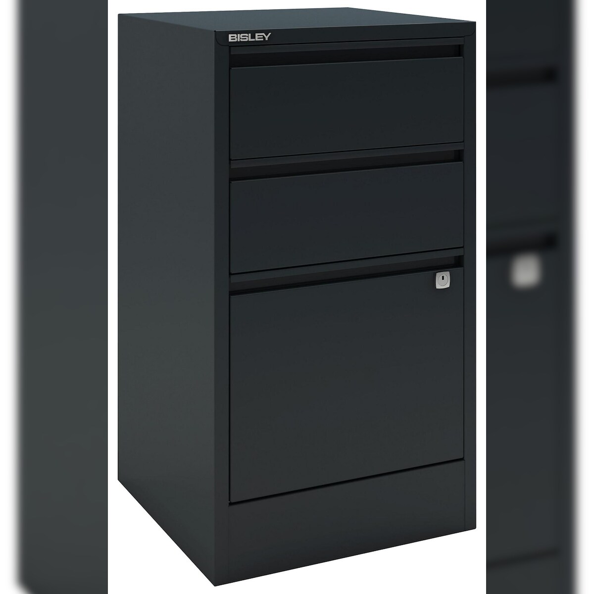 Bisley Home Filer Beistellschrank mit Schloss aus Stahlblech, 2 Universal-Schubladen + 1 Hängeregistratur-Schublade einbahnig abschließbar - für
