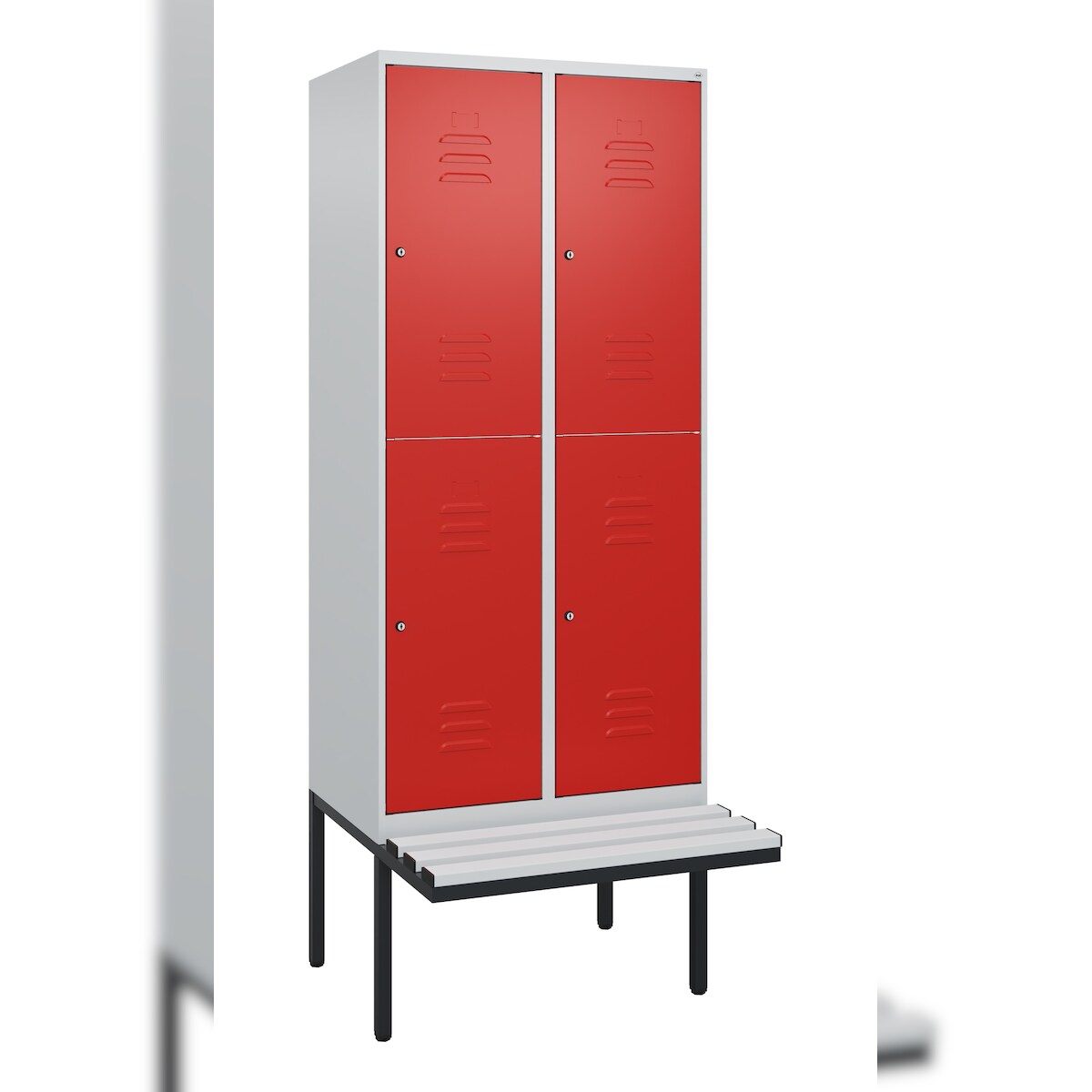 C+P Spind Classic PLUS, Kunststoff schwebende Sitzbank, 4 Abteile, HxBxT 212x80x82cm, Zylinderschloss, Hellgrau/Rot von PROREGAL