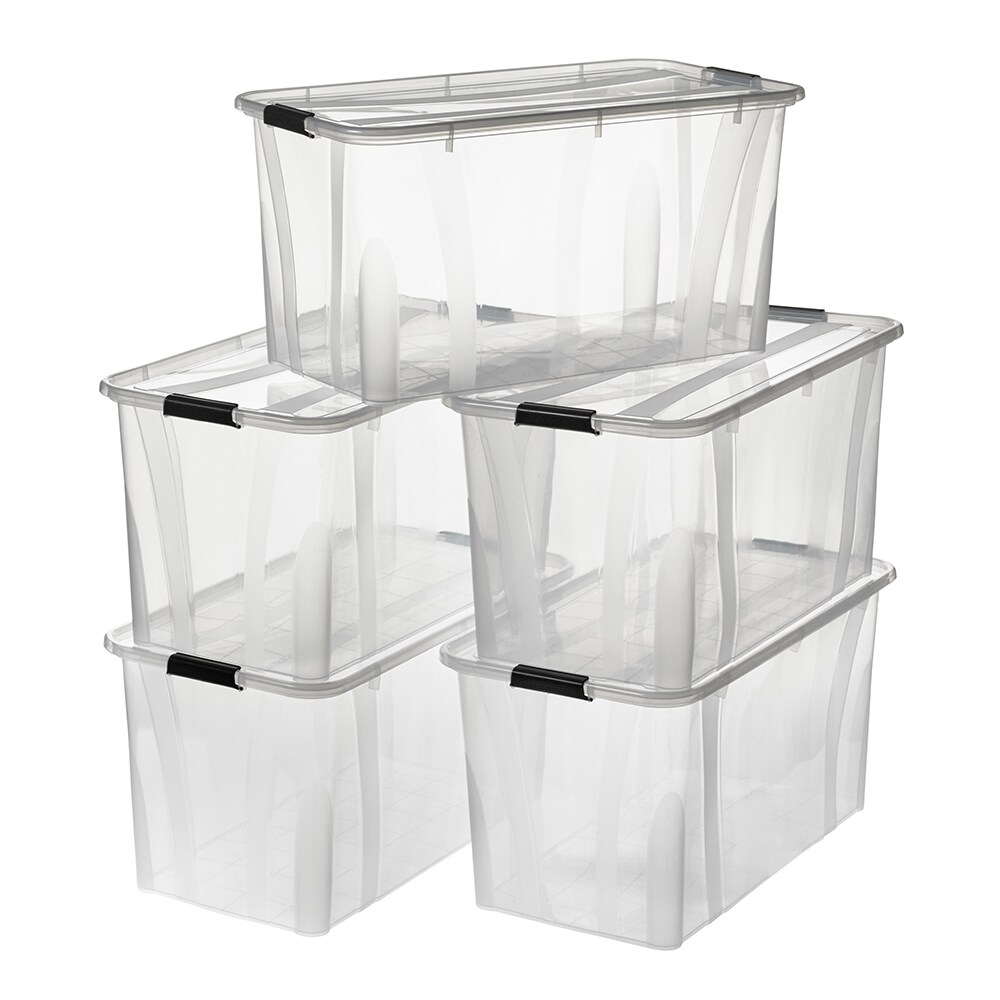 5 Stück Aufbewahrungsbox transparent 80 Liter mit Deckel und Klickverschluss 719 x 385 x 372 mm