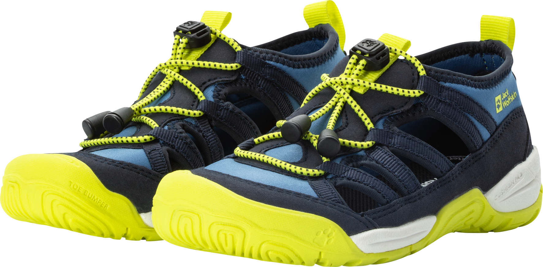 Sandale JACK WOLFSKIN "VILLI SANDAL K", Gr. 35, blau (blau, gelb), Synthetik, Textil, sportlich, Schuhe