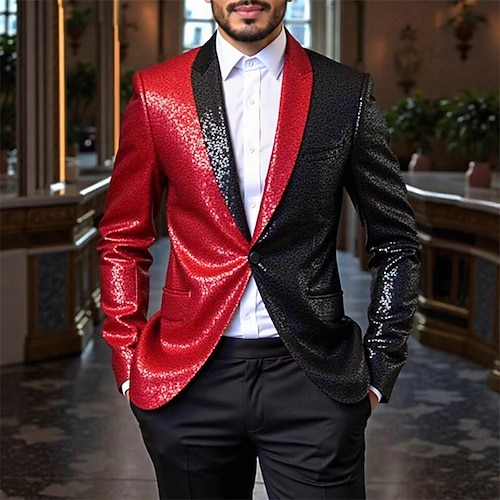 Per uomo Blazer Affari Cocktail party Ricevimento di matrimonio Moda Casual Primavera Autunno Poliestere Blocco di colori Tasca Bottoni Confortevole Monopetto Giacca Argento Rosso Blu Viola
