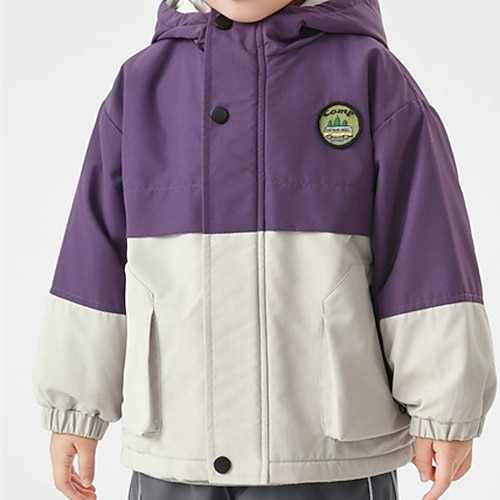 Bambini Ragazzi Giubbino da escursione Giacca da esterno Capispalla Blocco di colori Manica Lunga Cerniera Tasca Comfort Impermeabile Antivento Cappotto All'aperto Moda Quotidiano Verde scuro Lilla