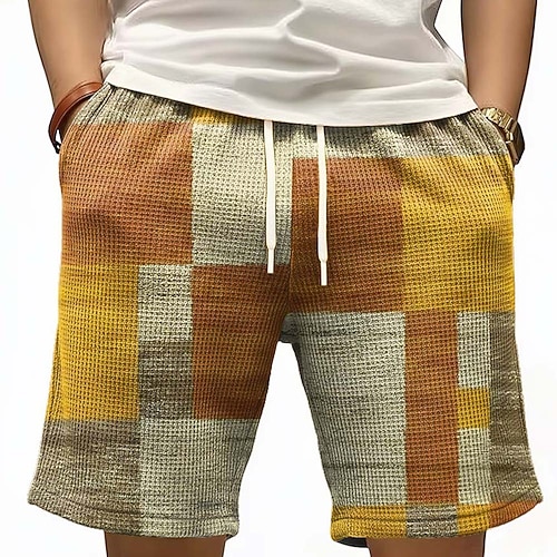 Per uomo Geometrico Blocco di colori Patchwork Pantaloncini Waffle Pantaloncini da tuta Pantaloncini casual Misura del girovita medio Moda Casual Vacanza Jogging Allenamento Testurizzato Coulisse