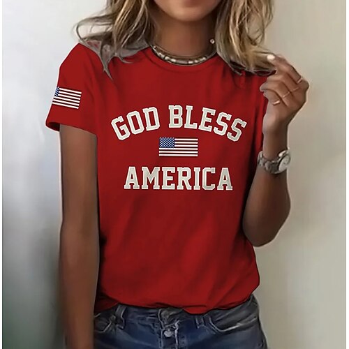Giorno dell'Indipendenza Americana Per donna Maglietta Stampato Grafico Bandiera Lettera Elegante Classico Casual Manica Corta Girocollo Top lunghi Quotidiano Blu Nero Bianco Rosso Estate Primavera