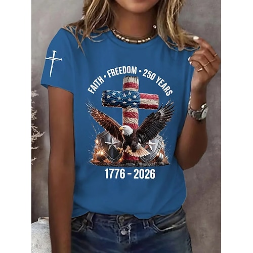 Maglietta Patriottica Giorno dell'Indipendenza Americana 250° Anniversario per Donne T-Shirt Grafica Bandiera Vintage Elegante Classica Maniche Corte Collo Giro Collo a V Collo Rotondo Stampa