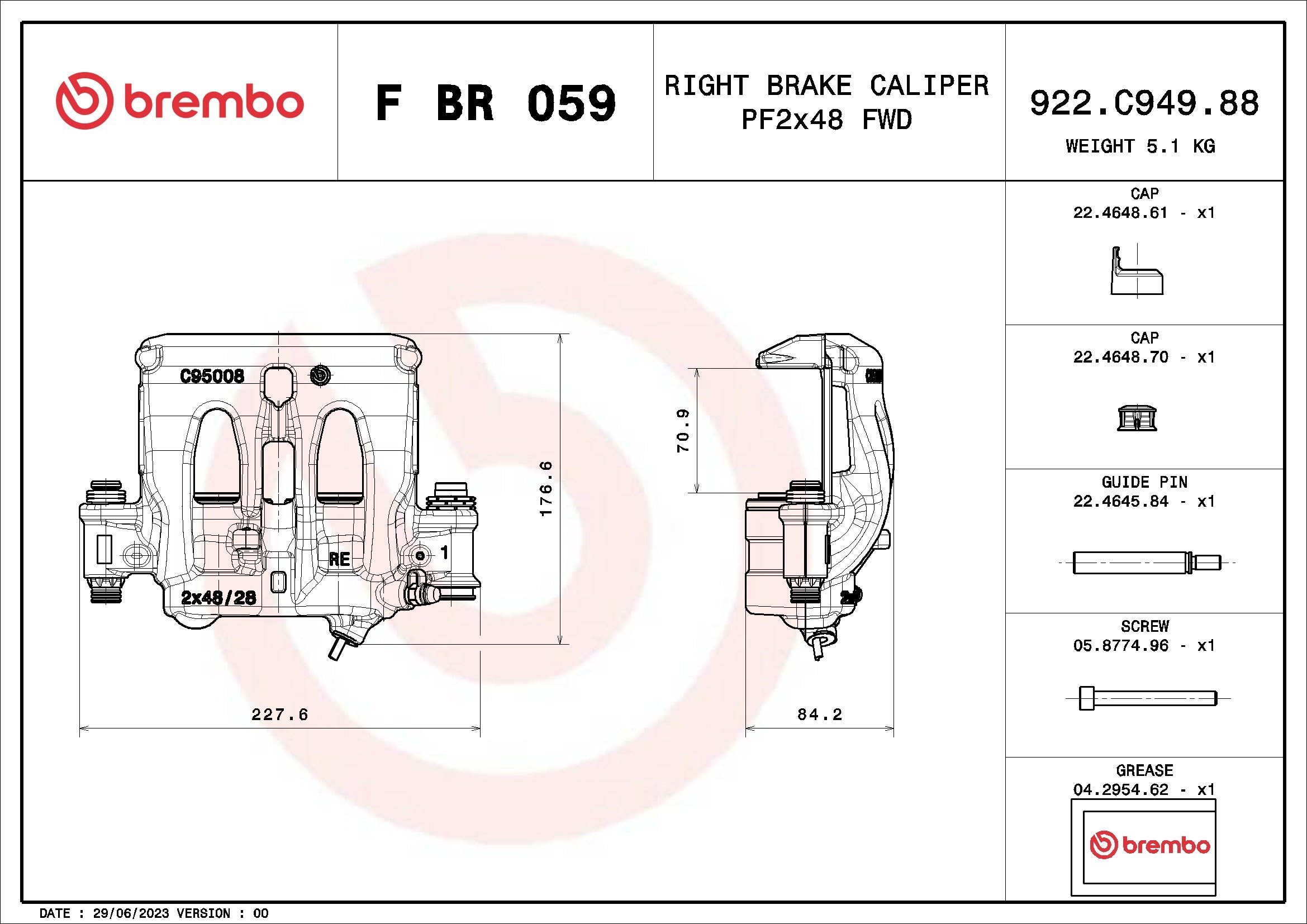 BREMBO Bremssattel vorne rechts für Bremsscheiben Durchmesser-Ø308mm 48mm FORD BK212B294AA 2345687 RMBK2J2B294AA F 24 179