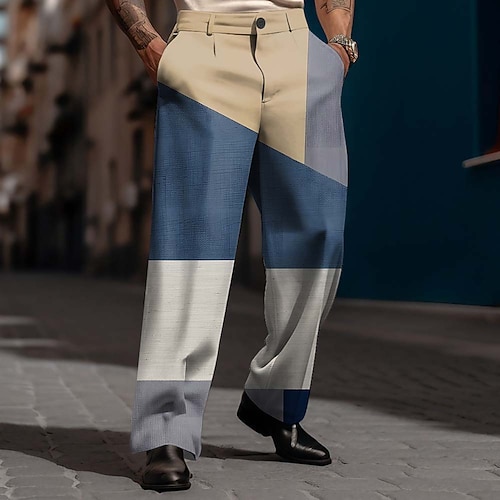 Per uomo Geometrico Blocco di colori Patchwork Pantaloni Pantaloni Eleganti Pantaloni da Abito Misura del girovita medio Casual Business Casual All'aperto Abbigliamento Quotidiano Pantaloni eleganti