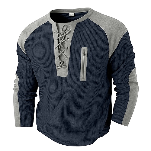 Per uomo Maglietta Waffle Maglietta Manica Lunga Girocollo Collo con lacci Autunno Autunno Inverno Tinta unica Blocco di colori Tradizionale / Vintage Casual Coulisse Casa All'aperto Sport Outdoor