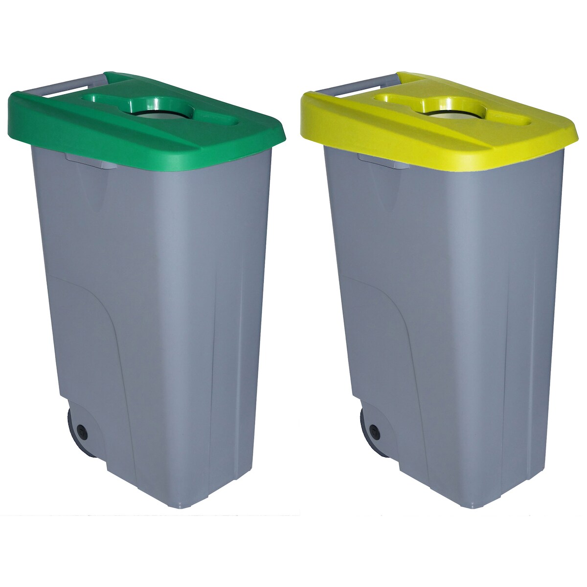 Denox Recycle Set mit 2 offenen Müllcontainern, 220 l Gesamtkapazität, aus Polyethylen in Grün und Gelb