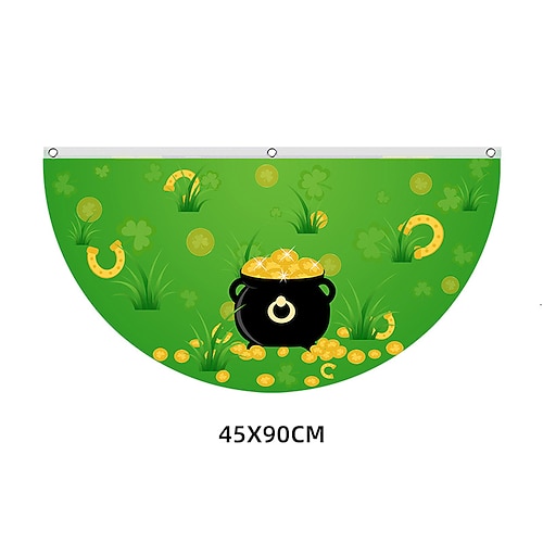 bandiera di San Patrizio, trifoglio irlandese disegno di foglia verde, decorazione di recinzione semicircolare, bandiera irlandese per la festa di San Patrizio, per decorazioni festive all'aperto.