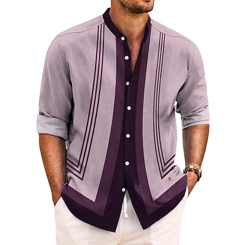 Per uomo Geometrico Sfumatura Linea Camicia Camicia con colletto alla coreana Camicia casual Manica Lunga Business Casual Vacanza Casa Quotidiano Estate Primavera Collo alla coreana Colletto alla