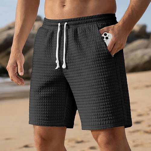 Per uomo Nido d'ape Shorts Pantaloncini Estivi Shorts da Spiaggia Pantaloncini casual Coulisse Elastico in vita Tinta unica Comodità Lunghezza al ginocchio Quotidiano All'aperto Ferie Vacanza Moda
