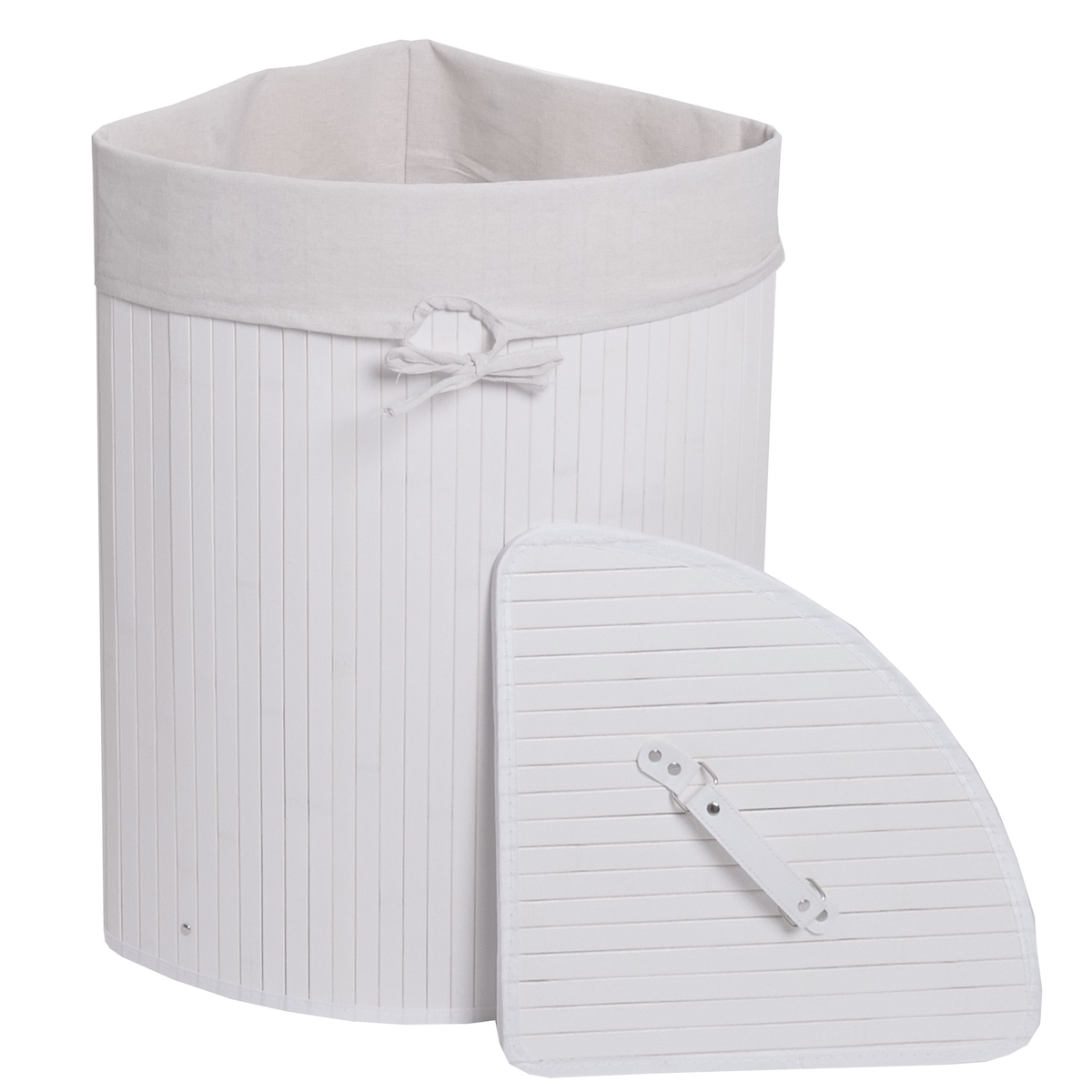 Mendler Eckwäschekorb HWC-C21, Laundry Wäschebox Wäschesammler Wäschebehälter, Bambus 61x48x35cm 50l ~ weiß
