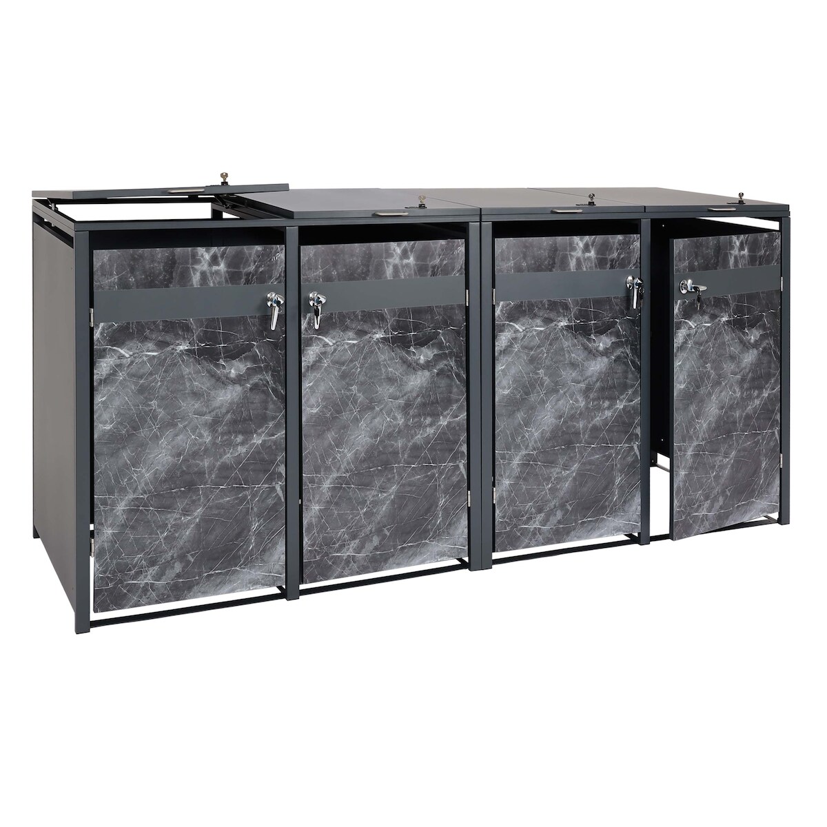 Mendler 4er Mülltonnenverkleidung HWC-J82, Mülltonnenbox, erweiterbar, Metall 100kg, anthrazit ~ Marmor-Optik dunkel