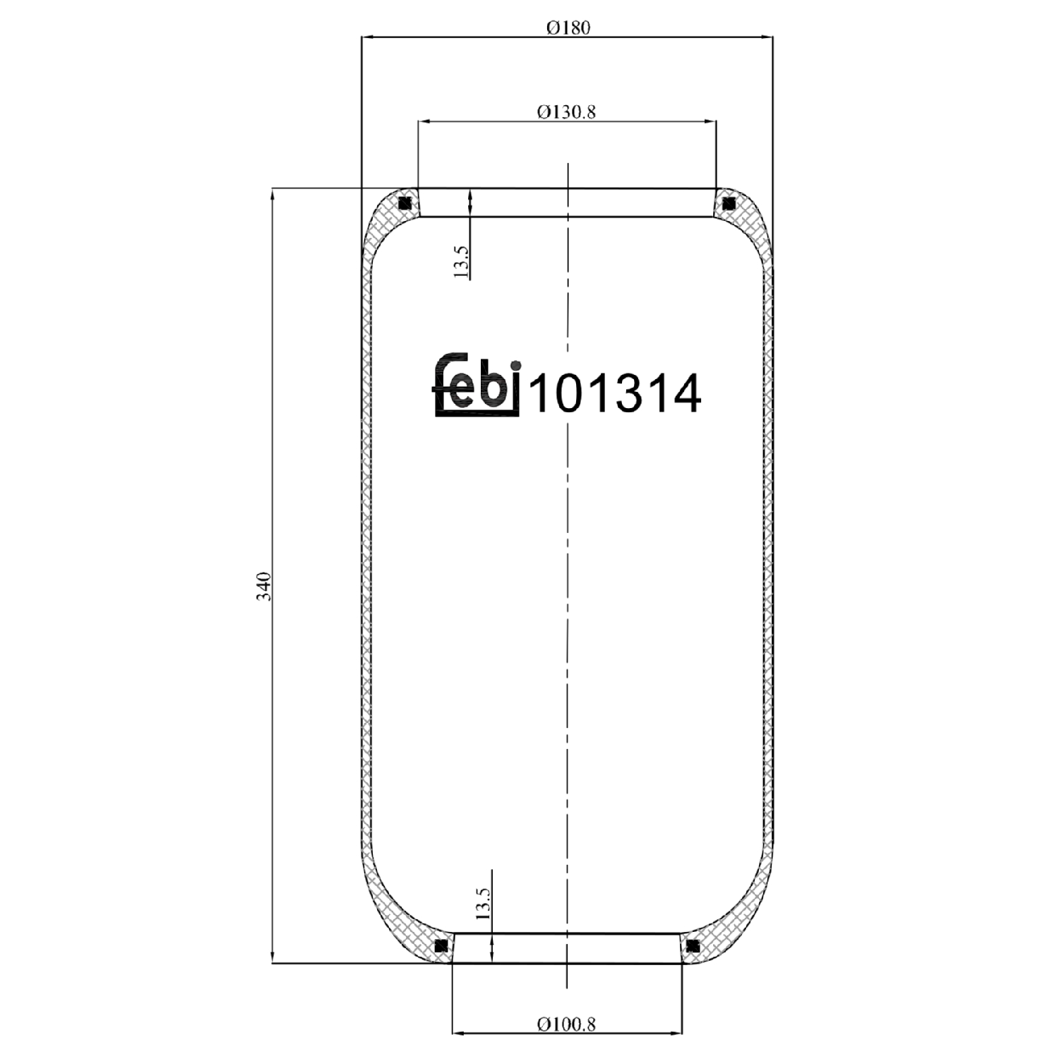 FEBI BILSTEIN Federbalg, Luftfederung febi Plus 101314 Universal Ungelenkte Vorlaufachse ohne Kolben 180mm für VOLVO 8147142