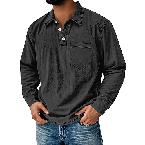 Per uomo Polo Polo da Golf Streetwear Affari Classico Manica Lunga Vintage Essenziale Tinta unica Tasca Autunno Inverno Interstagionale Vestibilità regolare Blu Rosa Nero Grigio Blu marino Viola Polo