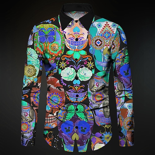 Per uomo Teschio Motivo Geometrico Camicia Camicia con Bottoni Manica Lunga Astratto Gotico Carnevale Abbigliamento quotidiano Uscire Autunno Inverno Collo ripiegato Stampato Bottonato Rosso Blu