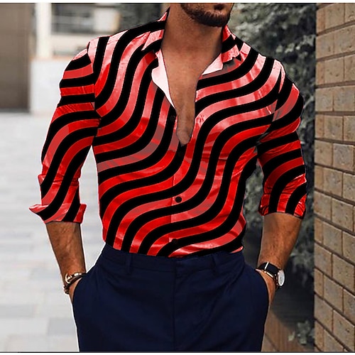 Per uomo A righe Motivo Geometrico Camicia Camicia con Bottoni Manica Lunga Festa Designer Casual Vacanza Quotidiano Ferie Colletto Colletto a Camicia Nero Giallo Rosso Viola