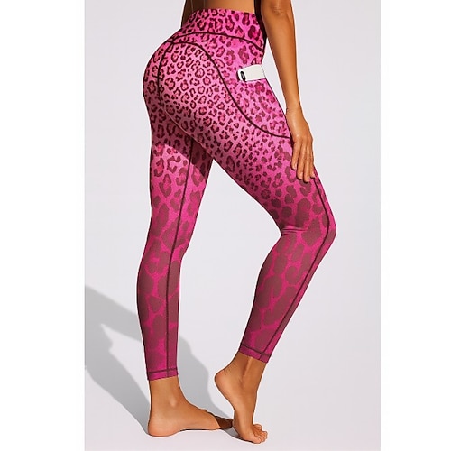 Per donna leggings da pilates Pantaloni fitness Leggings casual Tasche Bollo Patchwork Pilates Palestra Allenamento in Palestra Pantaloni Collant Leggings Leopardo Con Motivo Animale Leopardato Rosa
