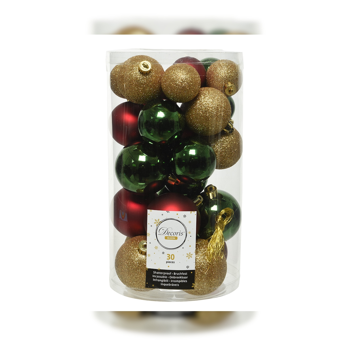 30 Weihnachtskugeln Kunststoff 4-6cm Mix Set Christbaumkugeln Glitzer Grün Rot Champagner