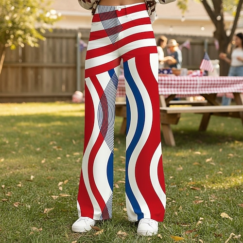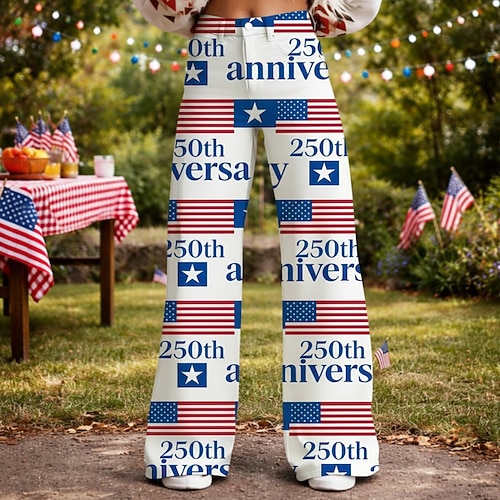 Americano 250 Retrò Vintage Anni '70 Pantaloni Pantaloni a gamba larga Hippie Disco Vita alta Costume Per donna Mascherata 4 Luglio Giorno dell'Indipendenza Semiquincentenario Adulti Pantaloni