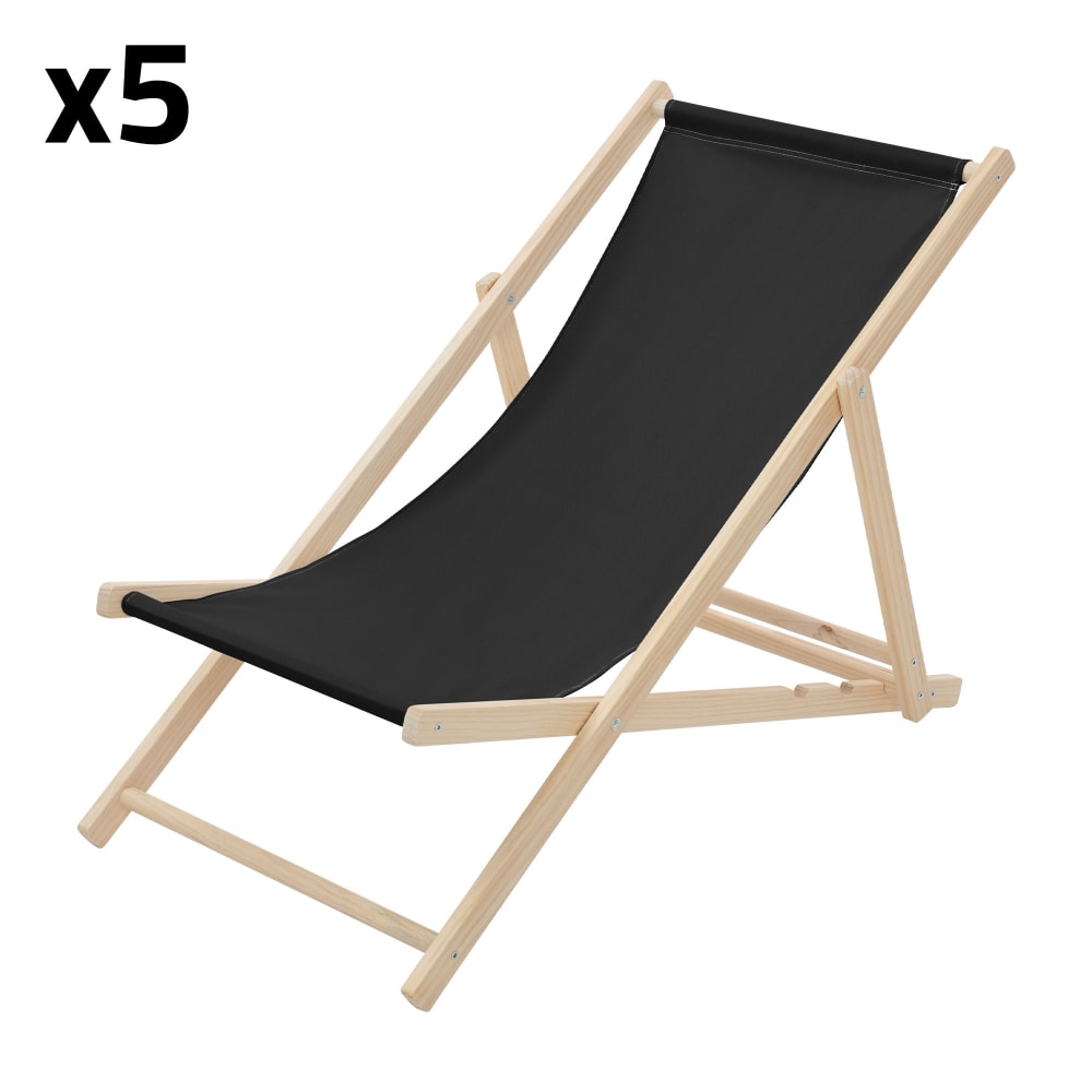 Set 5 sedie a sdraio nero in legno pino con schienale regolabile
