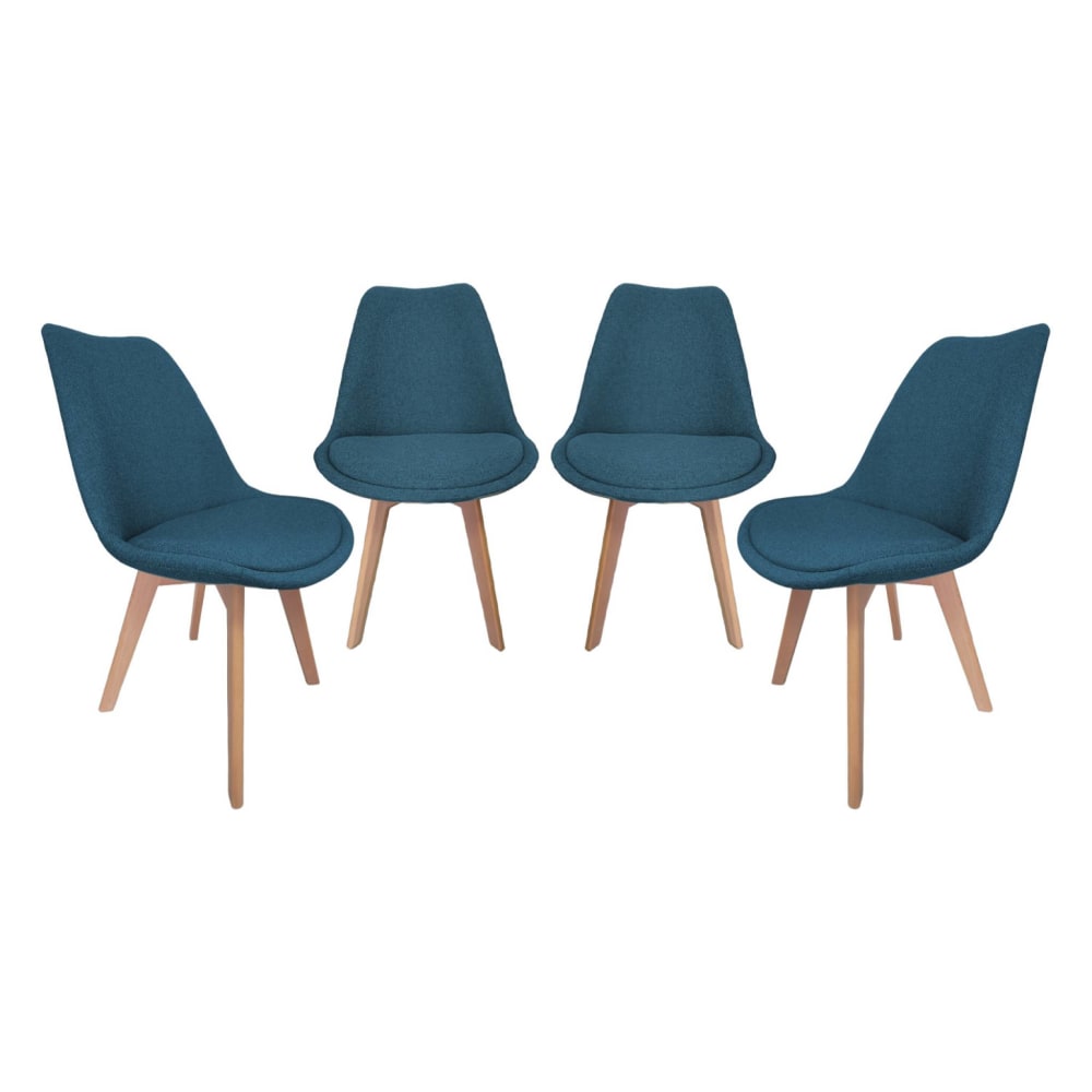 Set di 4 sedie scandinave in legno di faggio e tessuto semplice, blu