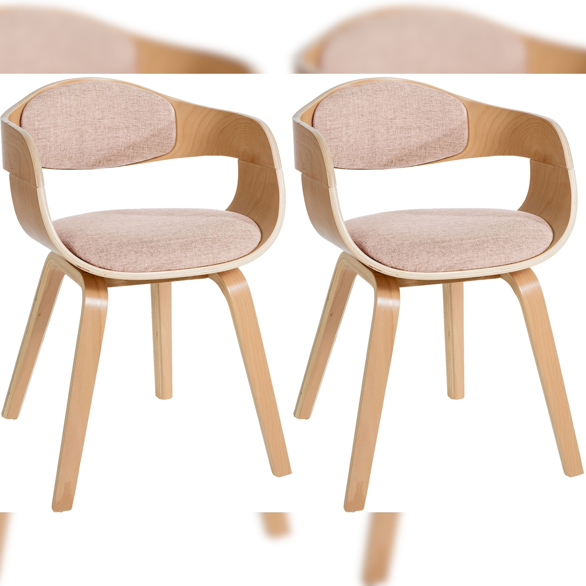 DELUKE® 2er Set Stühle LONDON Stoff - 73x49x46cm, Natur/Creme | Stoff | Holz Gestell | Konferenzstuhl Wartezimmerstuhl