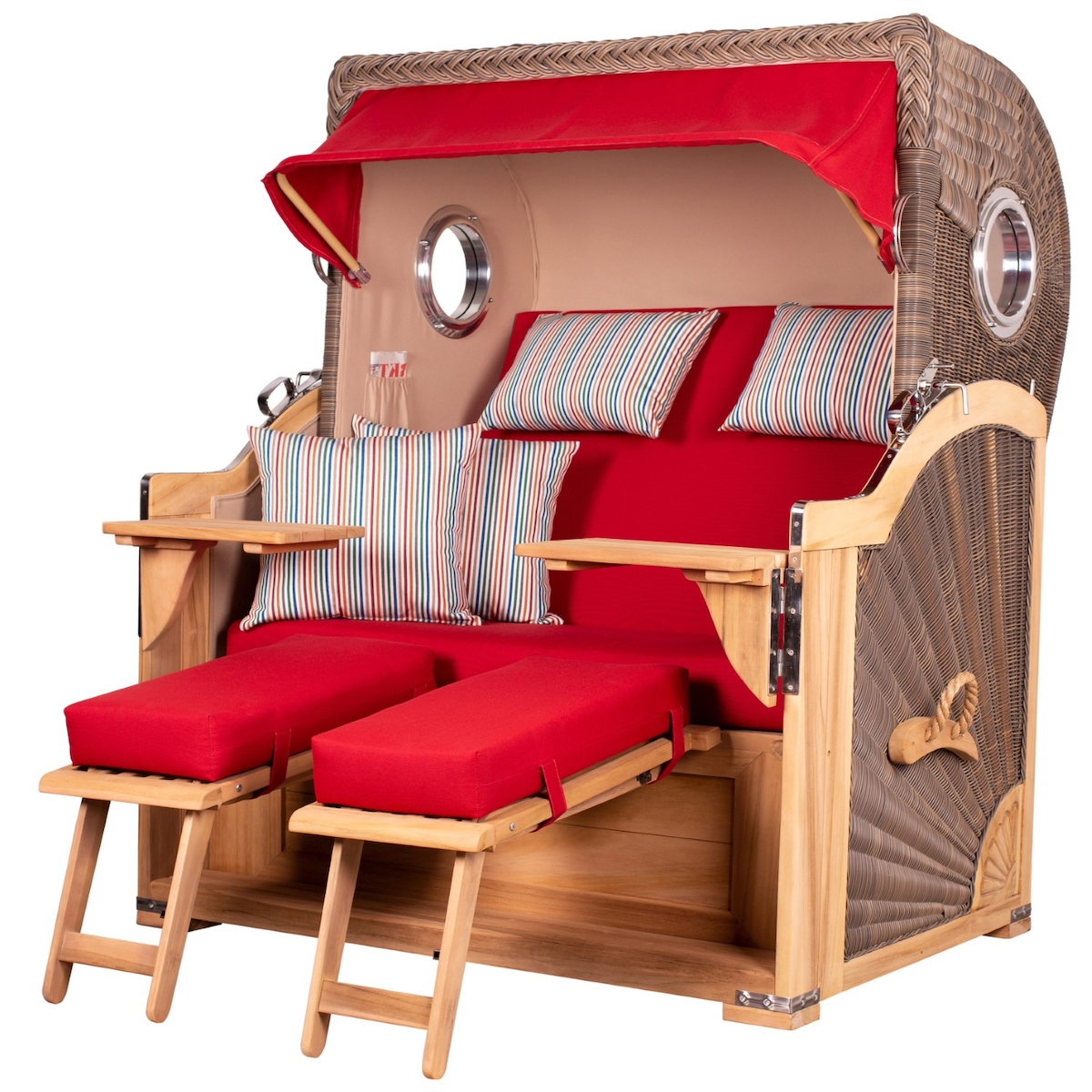 Mr. Deko Strandkorb Komplettset - bene living - Königssee Teak Bullauge - PE grau - Modell 585 - inkl. Liftersystem