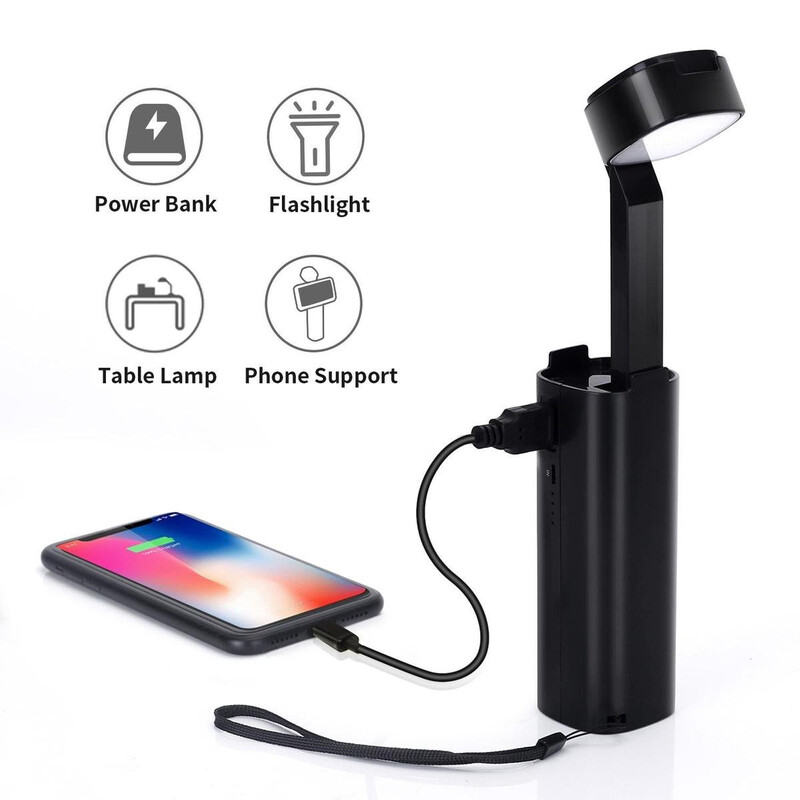Aigostar led-bureaulamp zwart, 3 W, 4500 K, 3-traps dimbaar met zaklamp en powerbank
