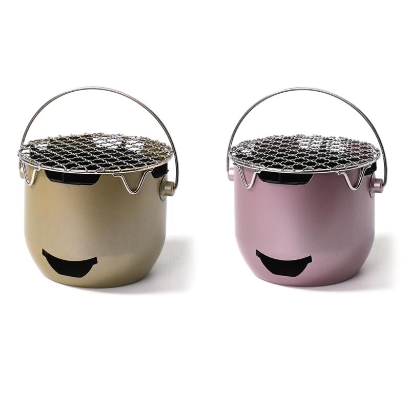 Lättviktig Portabel Kolgrill för BBQ Camping Liten Kolugn Hushålls Metallgrillar Lätt att Använda rosa