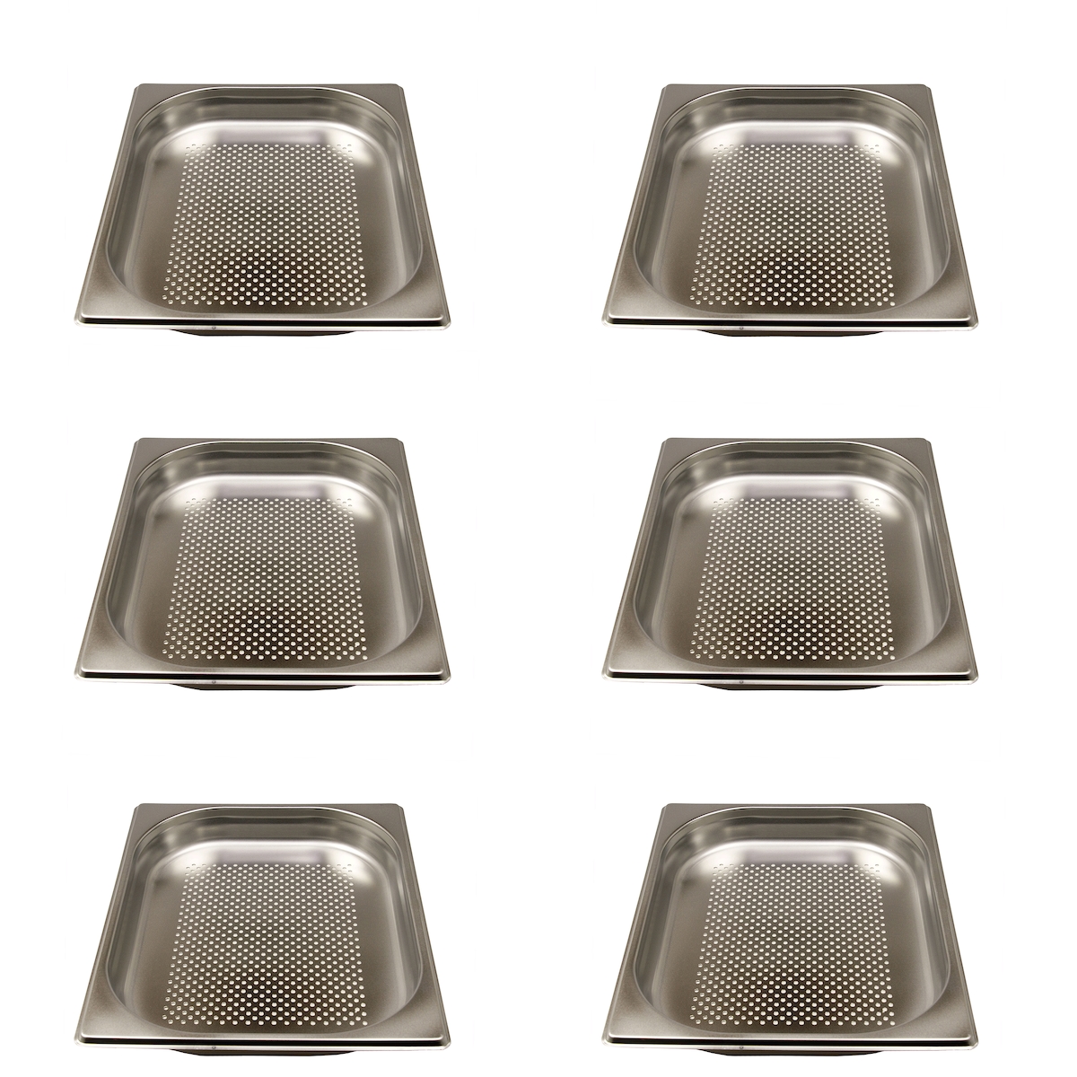 AcMax 6 Stück GN 1/3 Gastronormbehälter GN-Behälter Edelstahl 0,75 Liter Tiefe 20mm gelocht