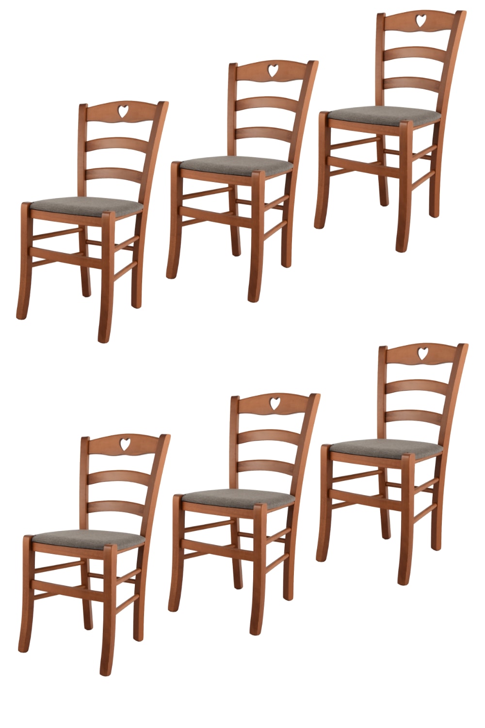 Set 6 Sedie in faggio color ciliegio e seduta tessuto capriolo