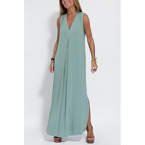 Per donna Abito maxi Abito Estivo Casual Quotidiano Vestibilità comoda Semplice Senza Maniche Scollo a V Blu Nero Bianco Marrone Estate