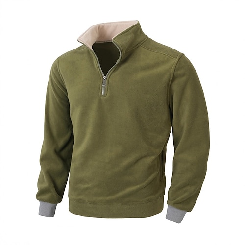 Per uomo Maglia Felpa con cappuccio in pile Felpa con zip corta Felpa con cappuccio foderata in pile Nero Verde militare Beige Grigio Collo Alto Semplice Patchwork Blocco di colore Sport Outdoor