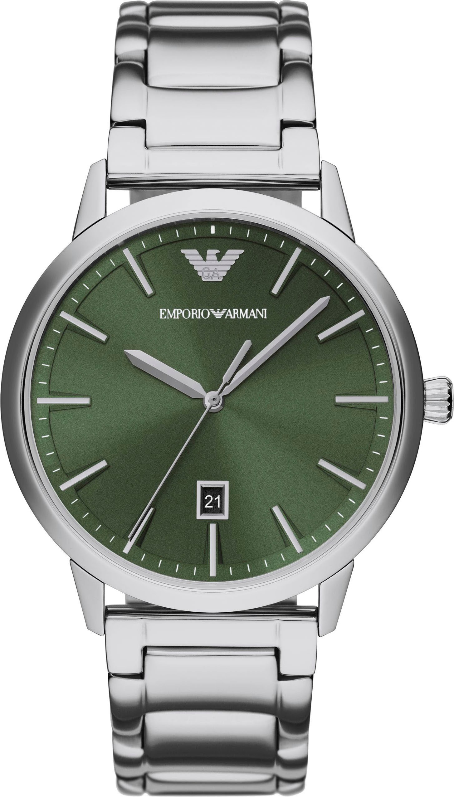 Quarzuhr EMPORIO ARMANI, edelstahlfarben, grün, Armbanduhren, Herren, Armbanduhr, Herrenuhr, Edelstahlarmband, analog, Tag