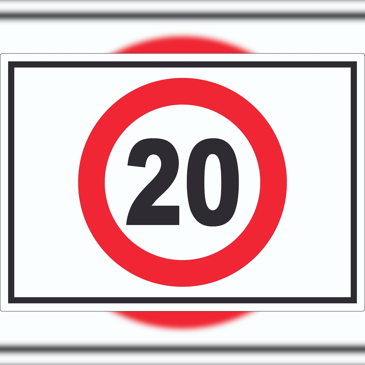 Tempo 20 km/h Geschwindigkeitsbegrenzung Schild Symbol A2 Rückseite selbstklebend