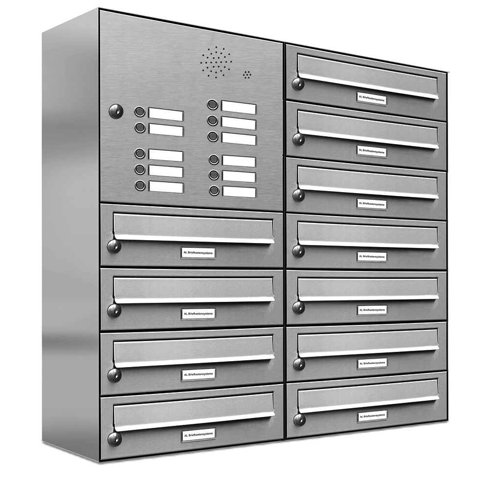 AL Briefkastensysteme 22 Fächer Premium Edelstahl Stand Briefkasten Anlage mit Klingeln, Post A4, modern, robust, wetterfest, Artikelnummer 132T22S3KS
