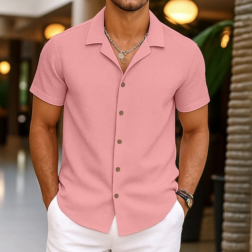 Per uomo Camicia Camicia Estiva Abbigliamento da spiaggia Camicia con Bottoni Semplice Vacanza Casuale Nero Bianco Rosa Blu Manica Corta Collo Camp Estate Abbigliamento Puro