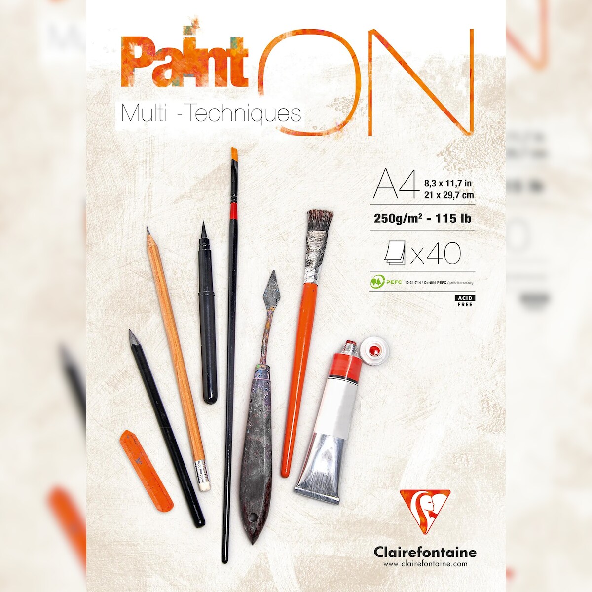 Clairefontaine 4x PaintON Blanc, Block A4, kopfseitig geleimt, 40 Blatt, 250g, weiß, Mixed Media - 96537C