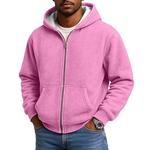Per uomo Felpa con cappuccio Felpa con cappuccio a zip intera Felpa con cappuccio in pile Felpa con cappuccio foderata in pile Blu Nero Rosa Rosso Blu marino Con Cappuccio Semplice Cerniera Sport