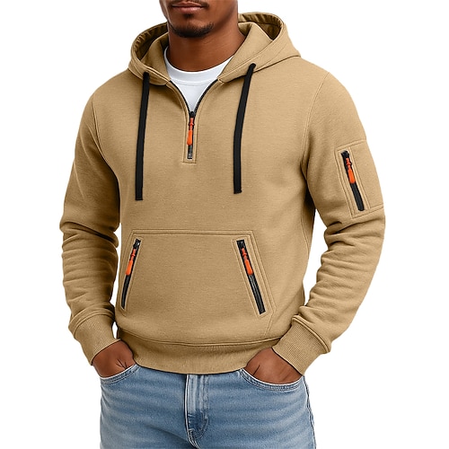 Per uomo Felpa con cappuccio Felpa con cappuccio e zip corta Felpa con cappuccio in pile Felpa con cappuccio tattica Bianco kaki Blu navy bianco Grigio scuro grigio chiaro Blu navy grigio
