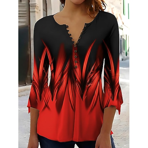 Per donna Blusa Ombre Grafico Astratto Elegante Vintage Manica 3/4 Scollo a V Top lunghi Quotidiano Uscire Bottoni Blu Rosso Arancione Verde Estate Primavera Autunno