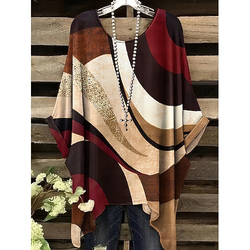 Blusa da Donna Taglie Forti Elegante Vintage Moda Stampa Blocco di Colori Regolari Tops Scollo a V Lavoro Casual Nero Bianco Rosso Vino Oro Primavera Autunno