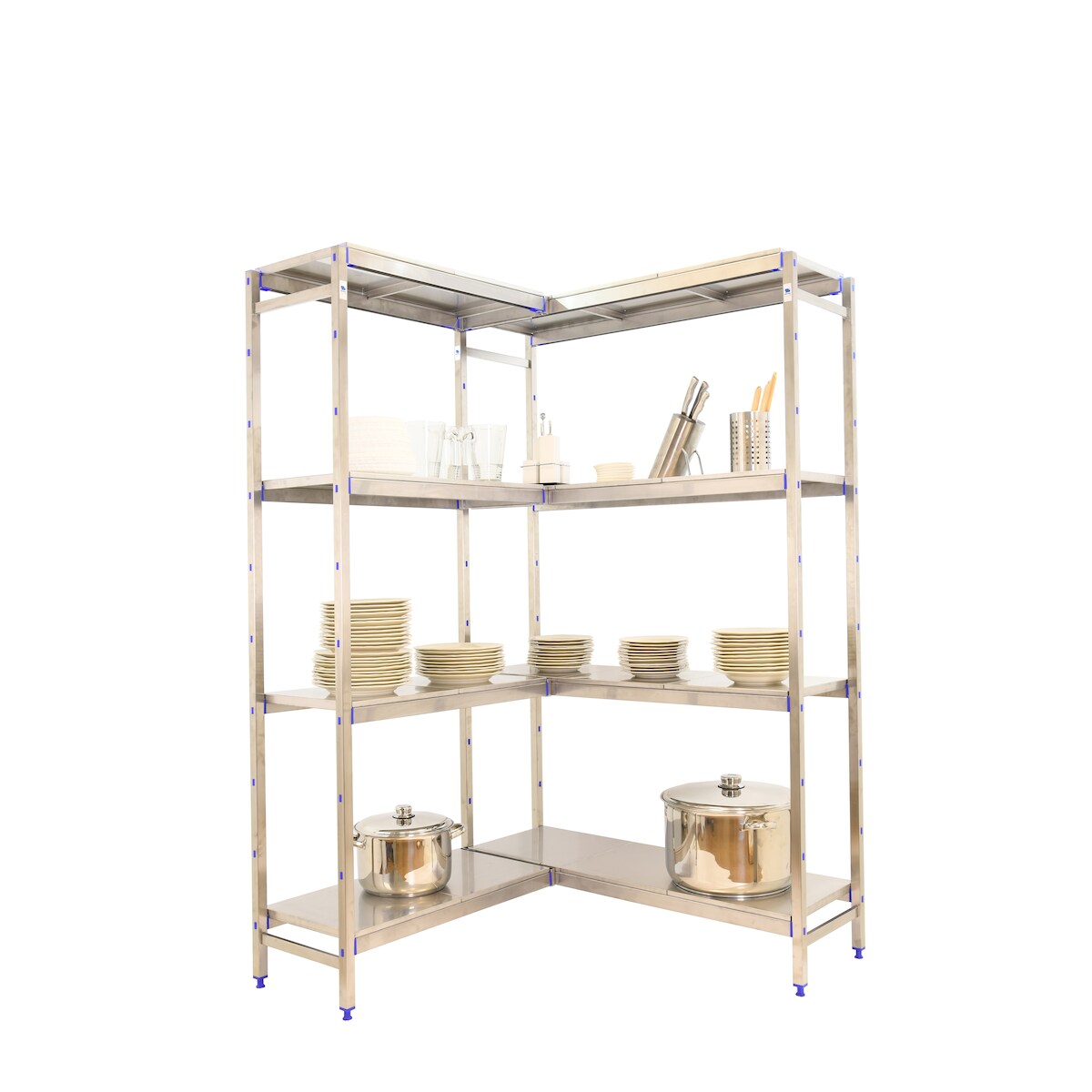 Simoninox Edelstahl-Eckregal 4 Fachböden 1600x1260x500 mm (Höhe x Länge x Breite)