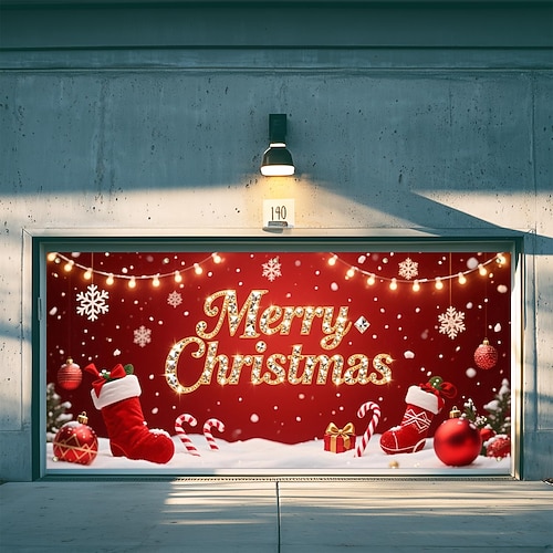 Natale Poster Copertura della porta Banner per esterni Pupazzo di neve Calze Carino 3D Da serata Dormitorio Stanza per adolescenti Dormitorio universitario Ragazzi Man Cave Frat Bedroom Sfondi di