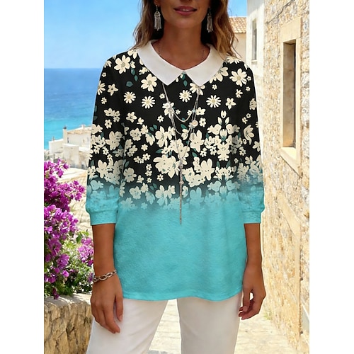 Per donna Camicia casual Camicia da Spiaggia Blusa Stampato Floreale Grafico Elegante Casual Boho Manica Lunga Collare Peter Pan Top Regolari Quotidiano Ferie Uscire Blu Giallo Azzurro cielo Azzurro