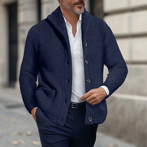Per uomo Felpa Cardigan A Coste Maglia Top Regolari Lavorato a maglia Bottoni Davanti Semplice Collo ripiegato Vacanza Moda Casuale Abbigliamento quotidiano Abbigliamento Inverno Primavera Autunno