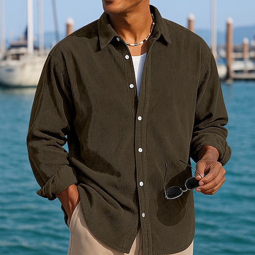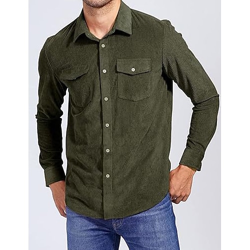 Per uomo Camicia Camicia di Velluto a Coste Camicia con Bottoni Camicia cargo Nero Marrone Verde Manica Lunga Tinta unica Collo ripiegato Casuale All'aperto Caldo Abbigliamento Vintage Moda Casual