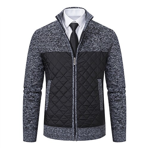 Per uomo Cardigan Maglione Corto Maglione con Zip Maglione a maglia A Coste Maglia Top Regolari Patchwork Tasca Semplice Collo alla coreana Moda Classico Vacanza Abbigliamento quotidiano Abbigliamento